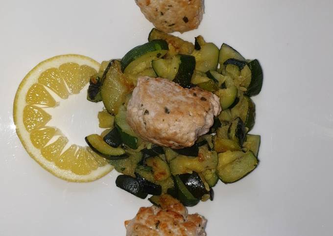 - Completez votre plat avec l accompagnement de votre choix. Ici une poêlée de courgettes..
