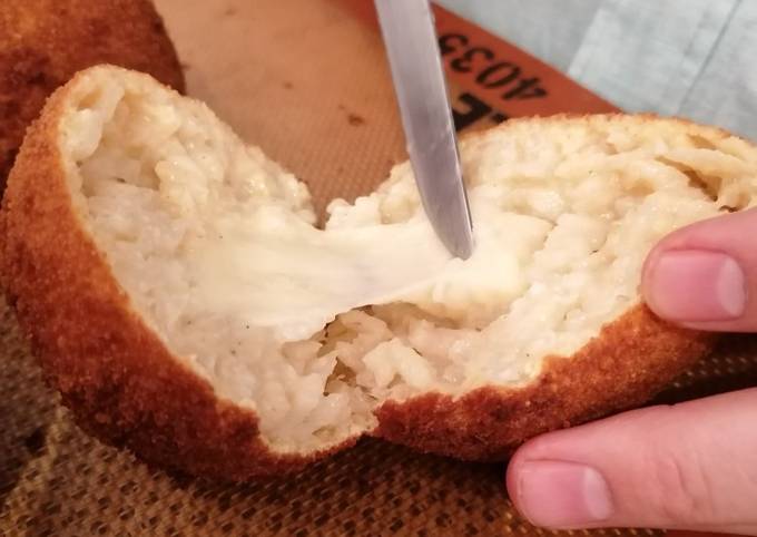 Fry the balls in small batches until evenly golden, turning as needed. Arancini are made by forming plain risotto into either conical, or round shapes, with mozzarella in the center. To add even more confusion, these supplì are often called "Arancini di riso al telefono" because when you break and pull them apart, the mozzarella forms a long string, like a telephone line. Vous pouvez cuisiner Arancini Di Mozzarella utilisant 14 Ingrédients et 9 instructions. Voici comment vous cuisinez ça.