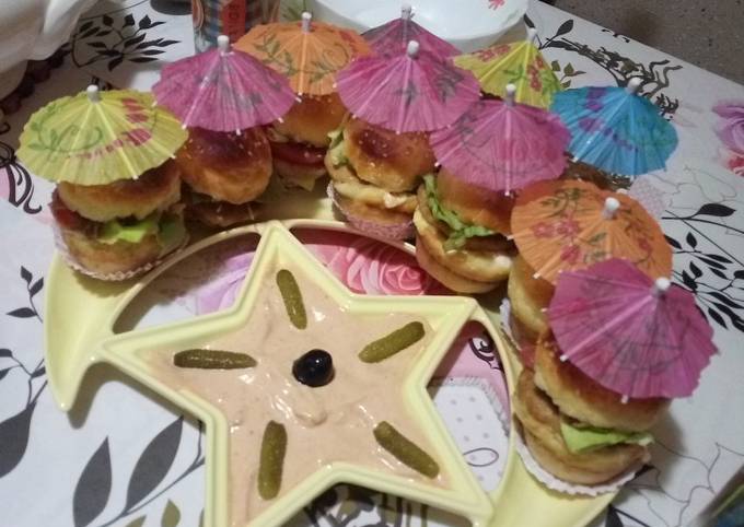 Mini humberger. I love burgers, but for entertaining, finger food is a must. Today's recipe is a good, simple, classic hamburger shrunk down into a bite sized mini burger.. Assemble the burgers with the buns, tomatoes,.